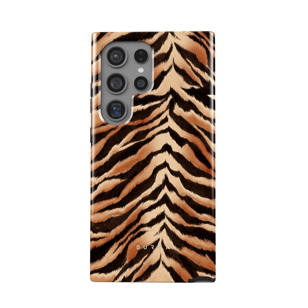 Kenmerken van dit design: tijgerstrepen, zwart, oranje, dierenprint, gedurfd patroon.