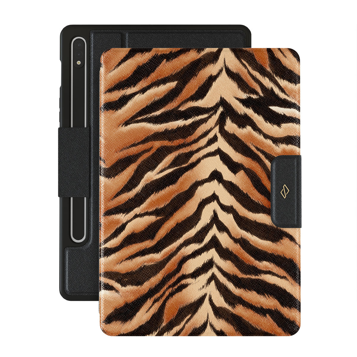 Kenmerken van dit design: tijgerstrepen, zwart, oranje, dierenprint, gedurfd patroon.