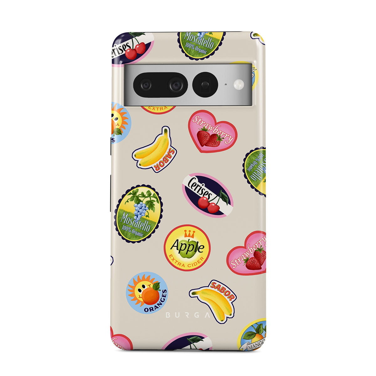 Kenmerken van dit design: Bananen, postzegels, kersen, appels, sinaasappels, aardbeien, felle kleuren, citrusaccenten, fruitmotieven, tropische patronen.