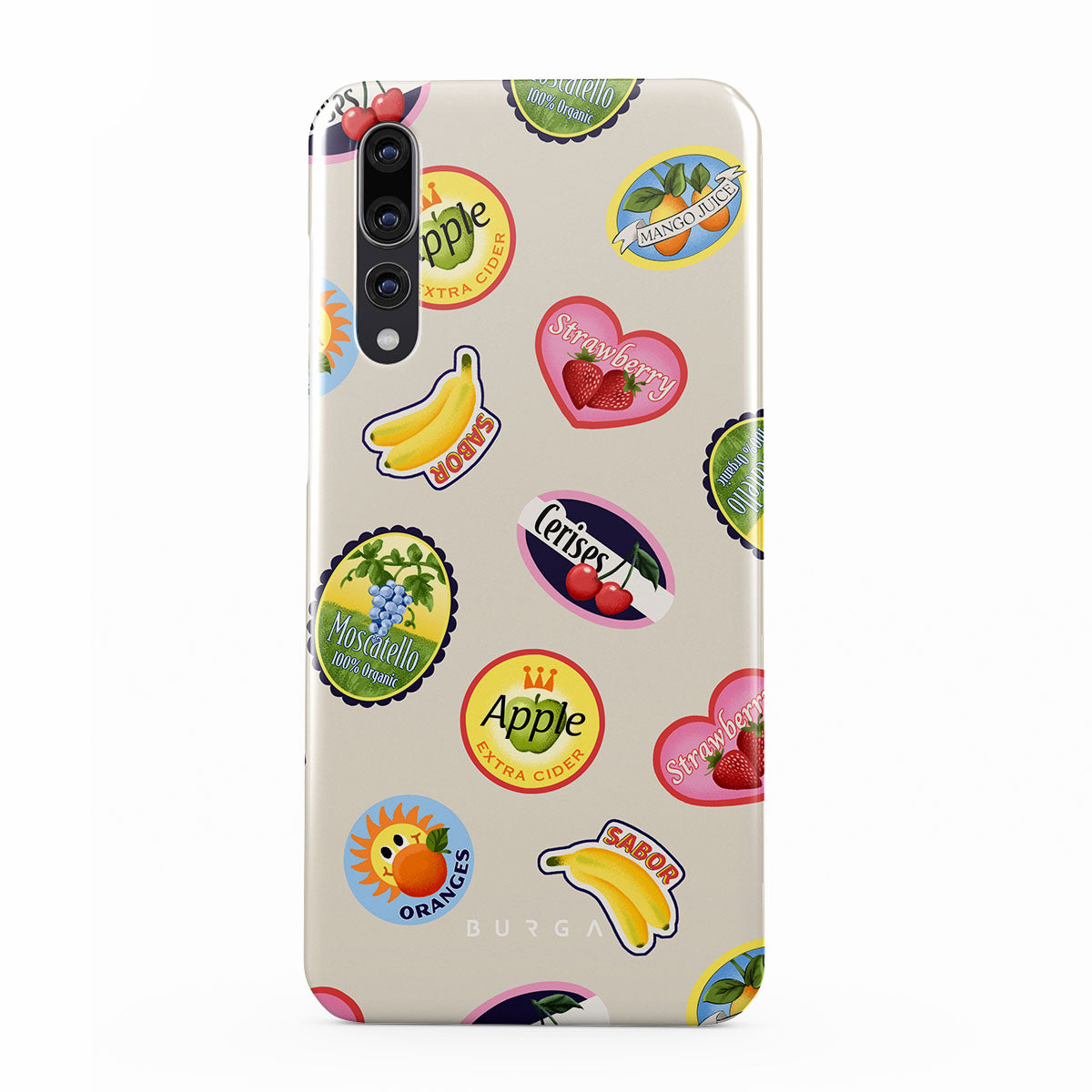 Kenmerken van dit design: Bananen, postzegels, kersen, appels, sinaasappels, aardbeien, felle kleuren, citrusaccenten, fruitmotieven, tropische patronen.