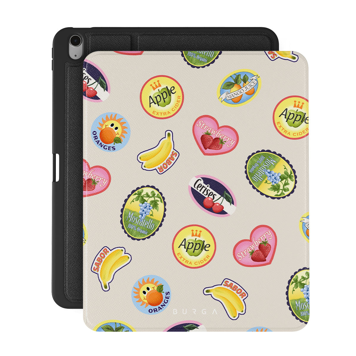 Kenmerken van dit design: Bananen, postzegels, kersen, appels, sinaasappels, aardbeien, felle kleuren, citrusaccenten, fruitmotieven, tropische patronen.