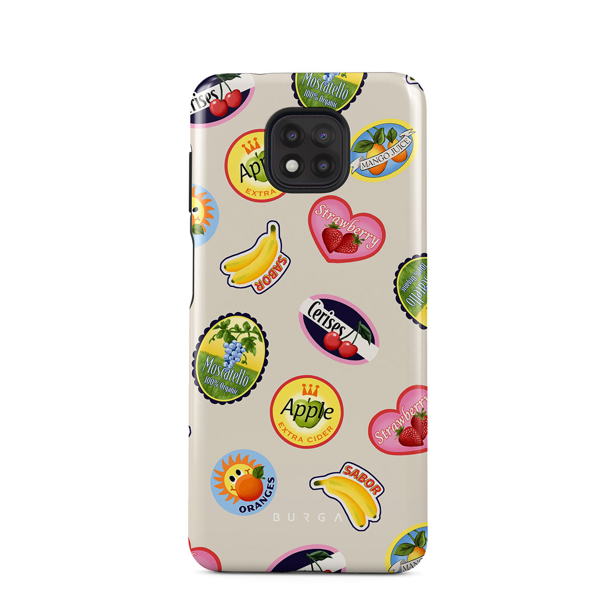 Kenmerken van dit design: Bananen, postzegels, kersen, appels, sinaasappels, aardbeien, felle kleuren, citrusaccenten, fruitmotieven, tropische patronen.