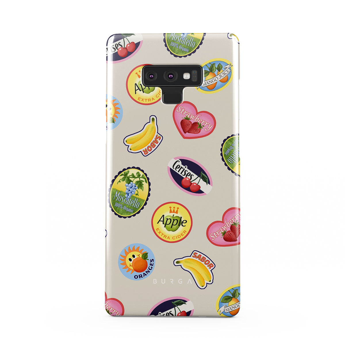 Kenmerken van dit design: Bananen, postzegels, kersen, appels, sinaasappels, aardbeien, felle kleuren, citrusaccenten, fruitmotieven, tropische patronen.