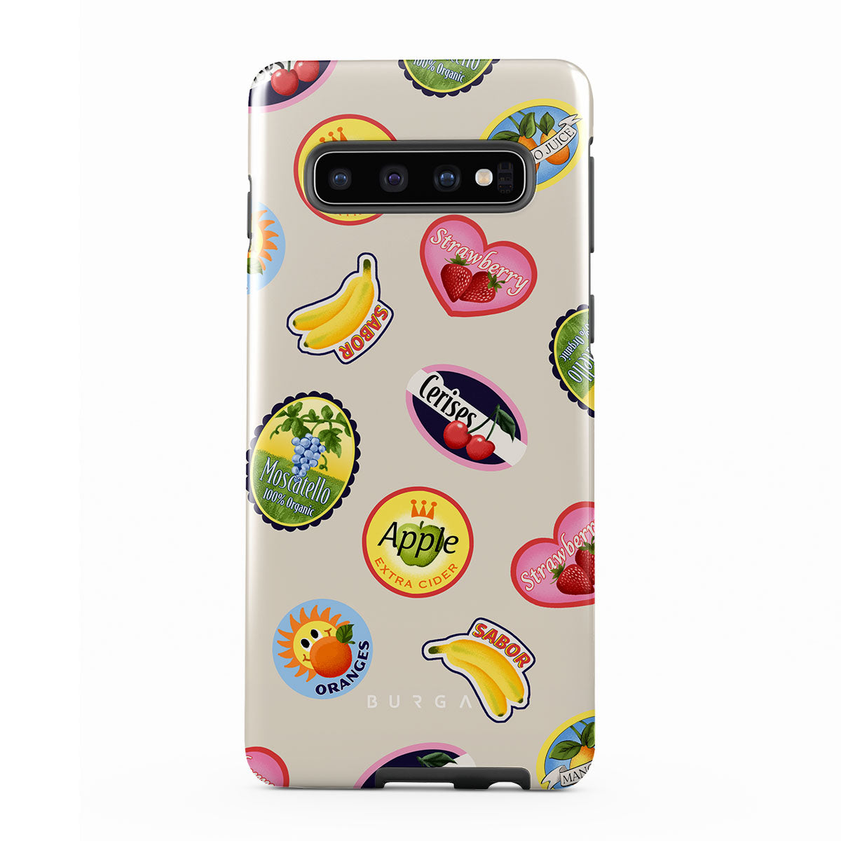 Kenmerken van dit design: Bananen, postzegels, kersen, appels, sinaasappels, aardbeien, felle kleuren, citrusaccenten, fruitmotieven, tropische patronen.