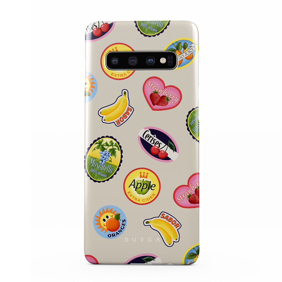 Kenmerken van dit design: Bananen, postzegels, kersen, appels, sinaasappels, aardbeien, felle kleuren, citrusaccenten, fruitmotieven, tropische patronen.
