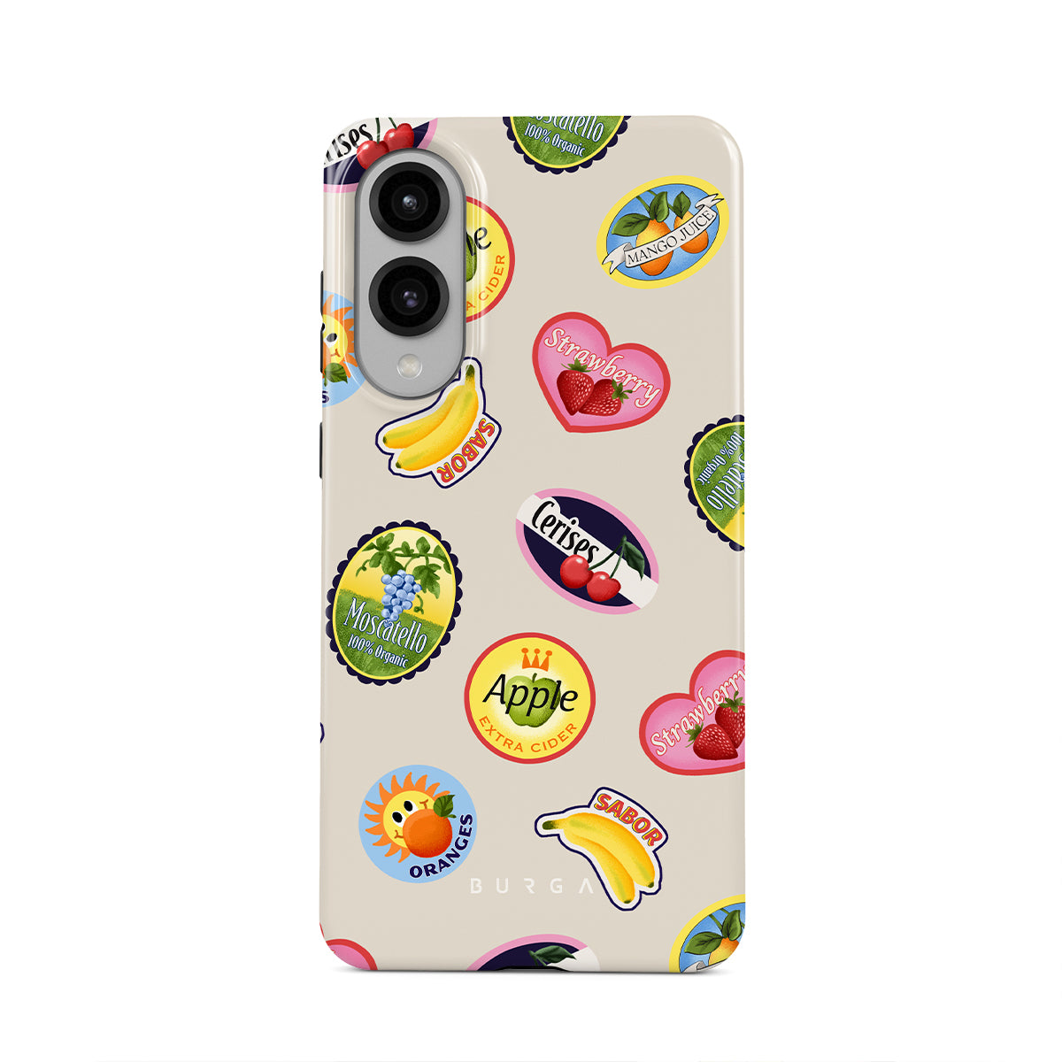 Kenmerken van dit design: Bananen, postzegels, kersen, appels, sinaasappels, aardbeien, felle kleuren, citrusaccenten, fruitmotieven, tropische patronen.