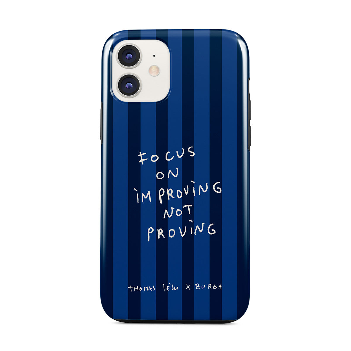 Kenmerken van dit design: handgeschreven tekst, citaat, blauwe strepen