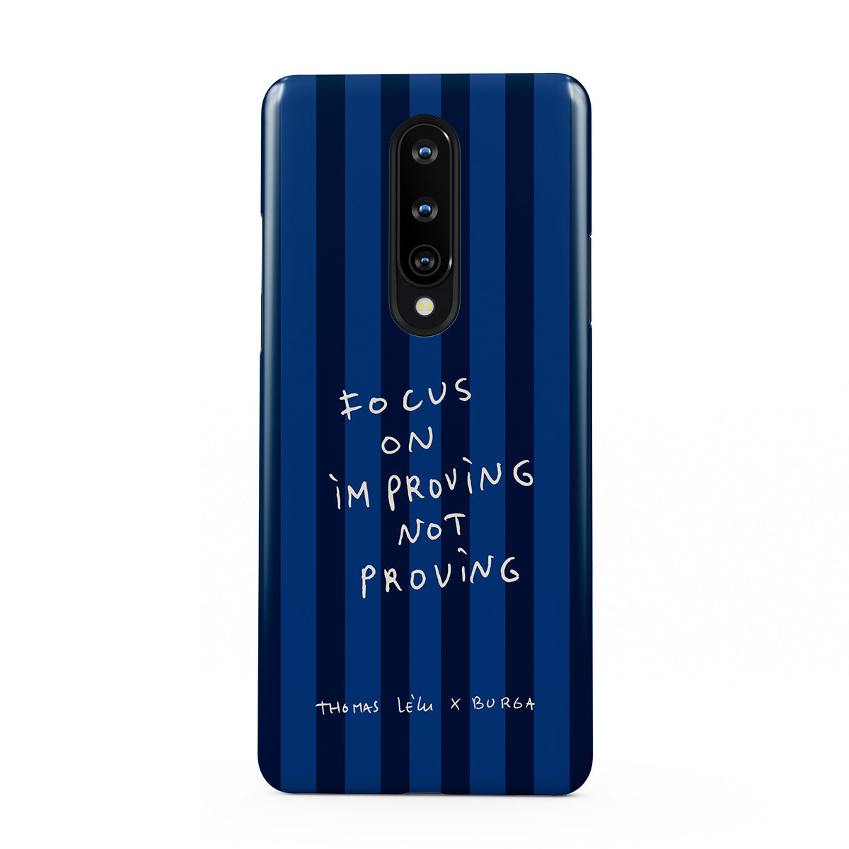 Kenmerken van dit design: handgeschreven tekst, citaat, blauwe strepen