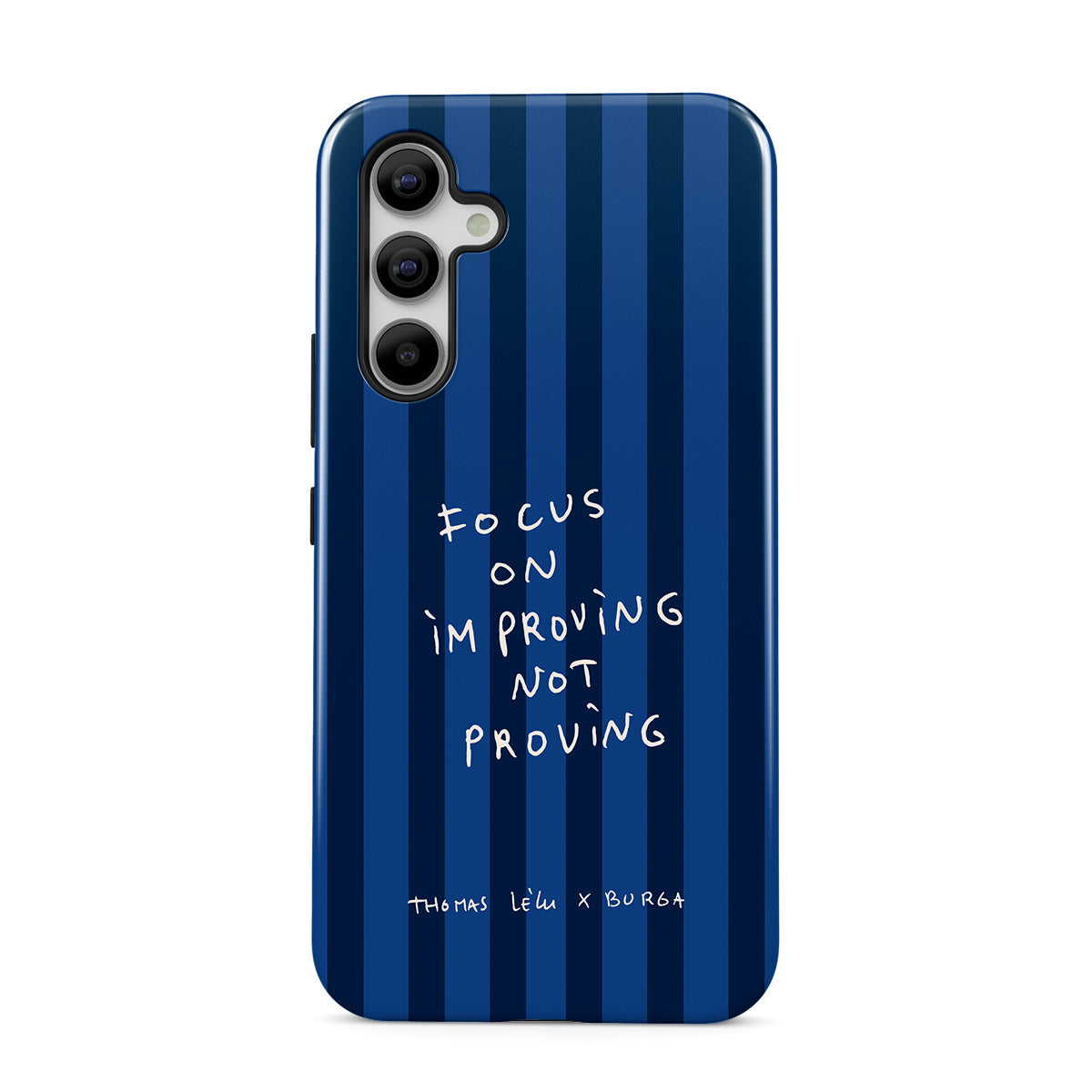 Kenmerken van dit design: handgeschreven tekst, citaat, blauwe strepen