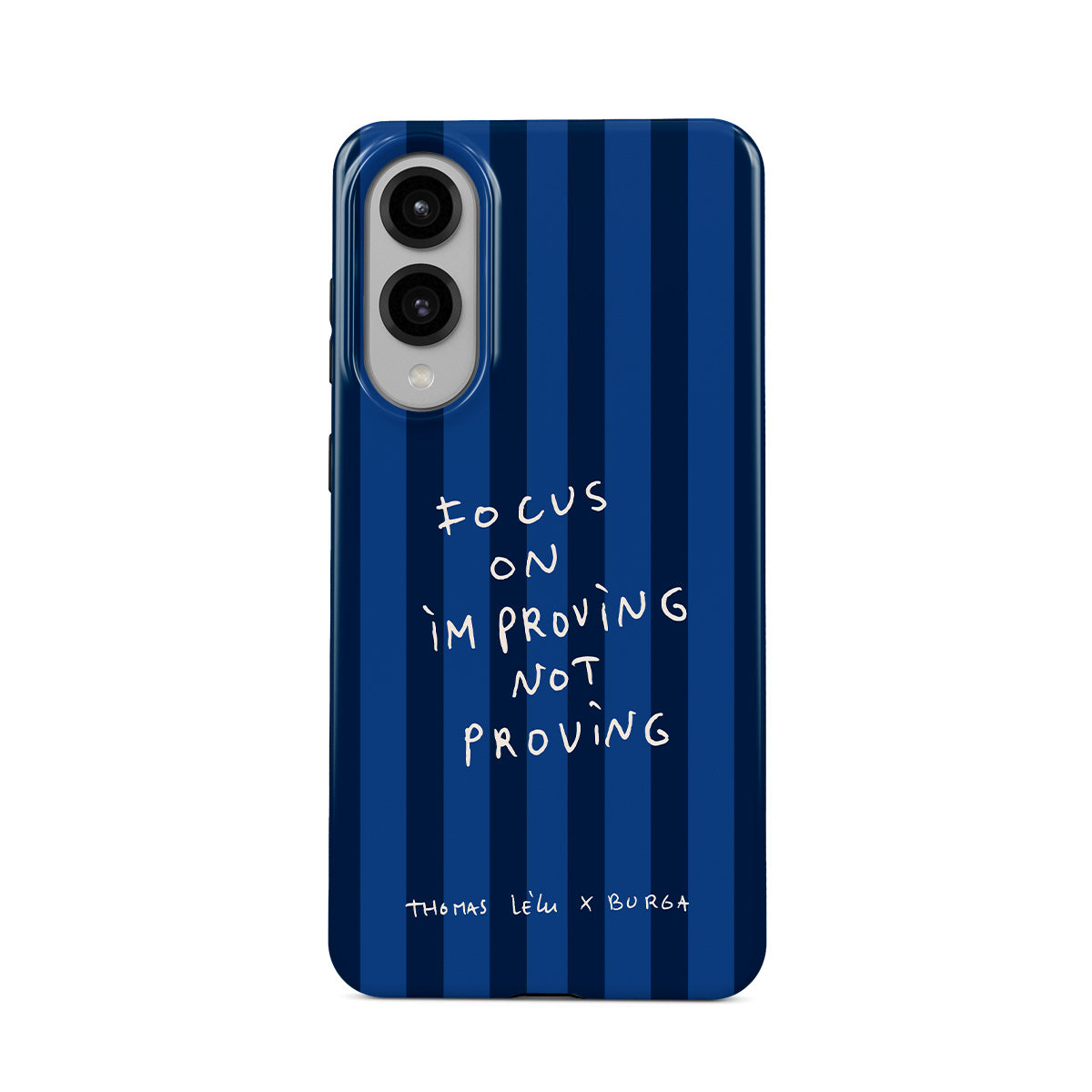 Kenmerken van dit design: handgeschreven tekst, citaat, blauwe strepen