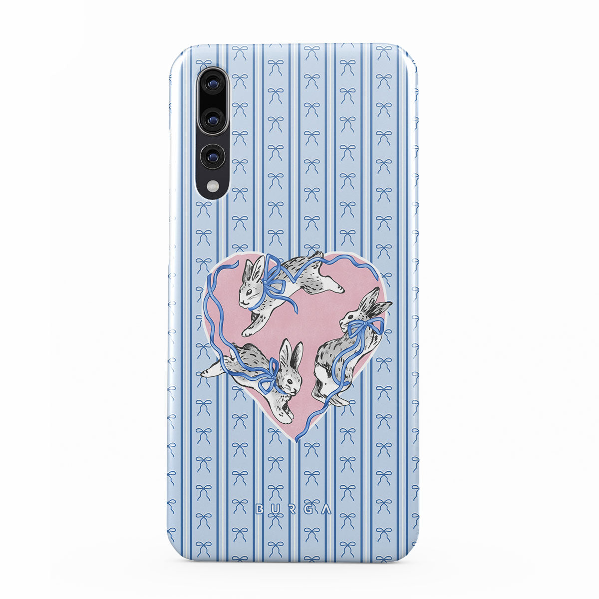 Kenmerken van dit design: witte konijnen, hartenlijst, blauwe strepen