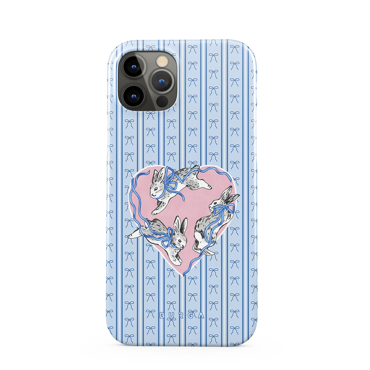 Kenmerken van dit design: witte konijnen, hartenlijst, blauwe strepen