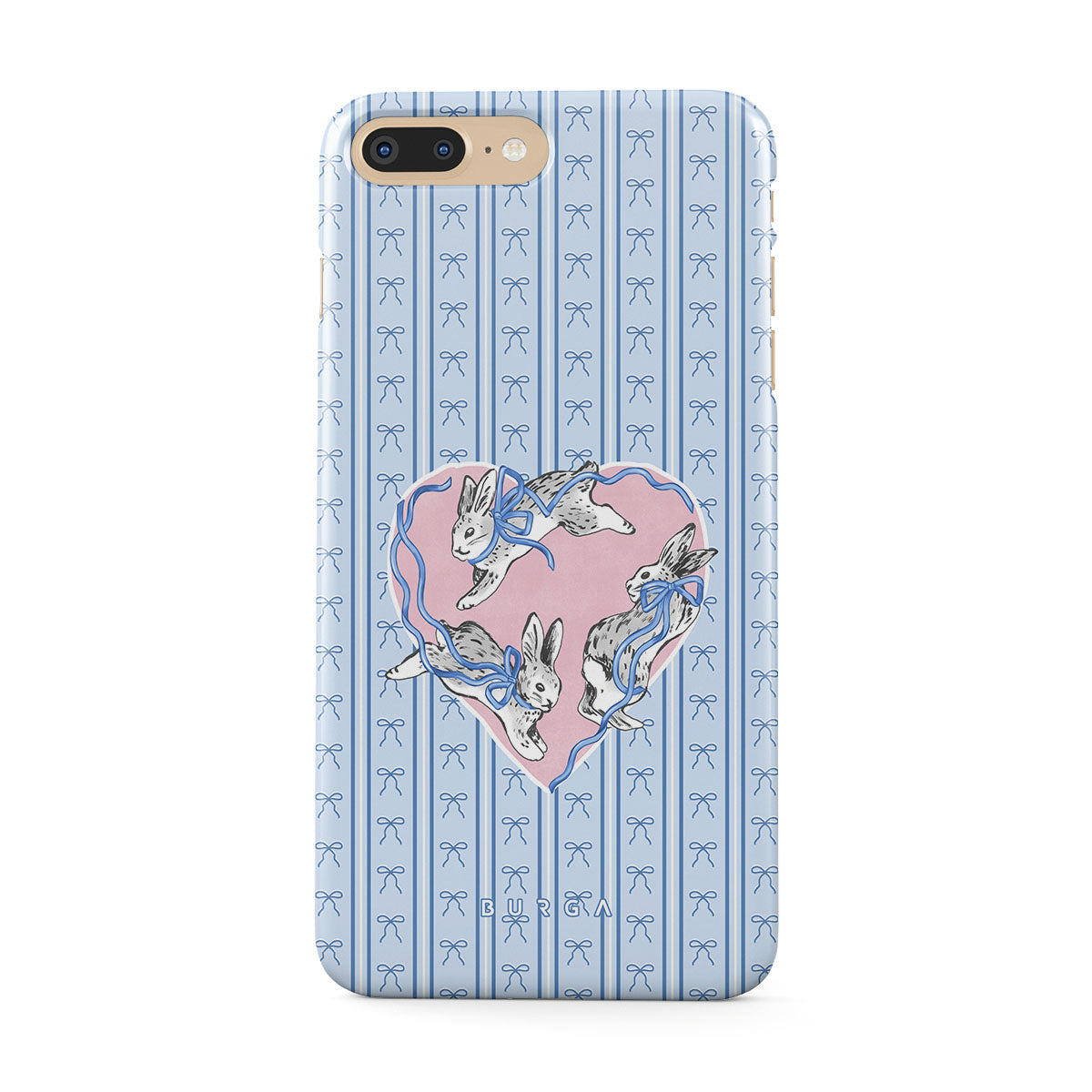 Kenmerken van dit design: witte konijnen, hartenlijst, blauwe strepen