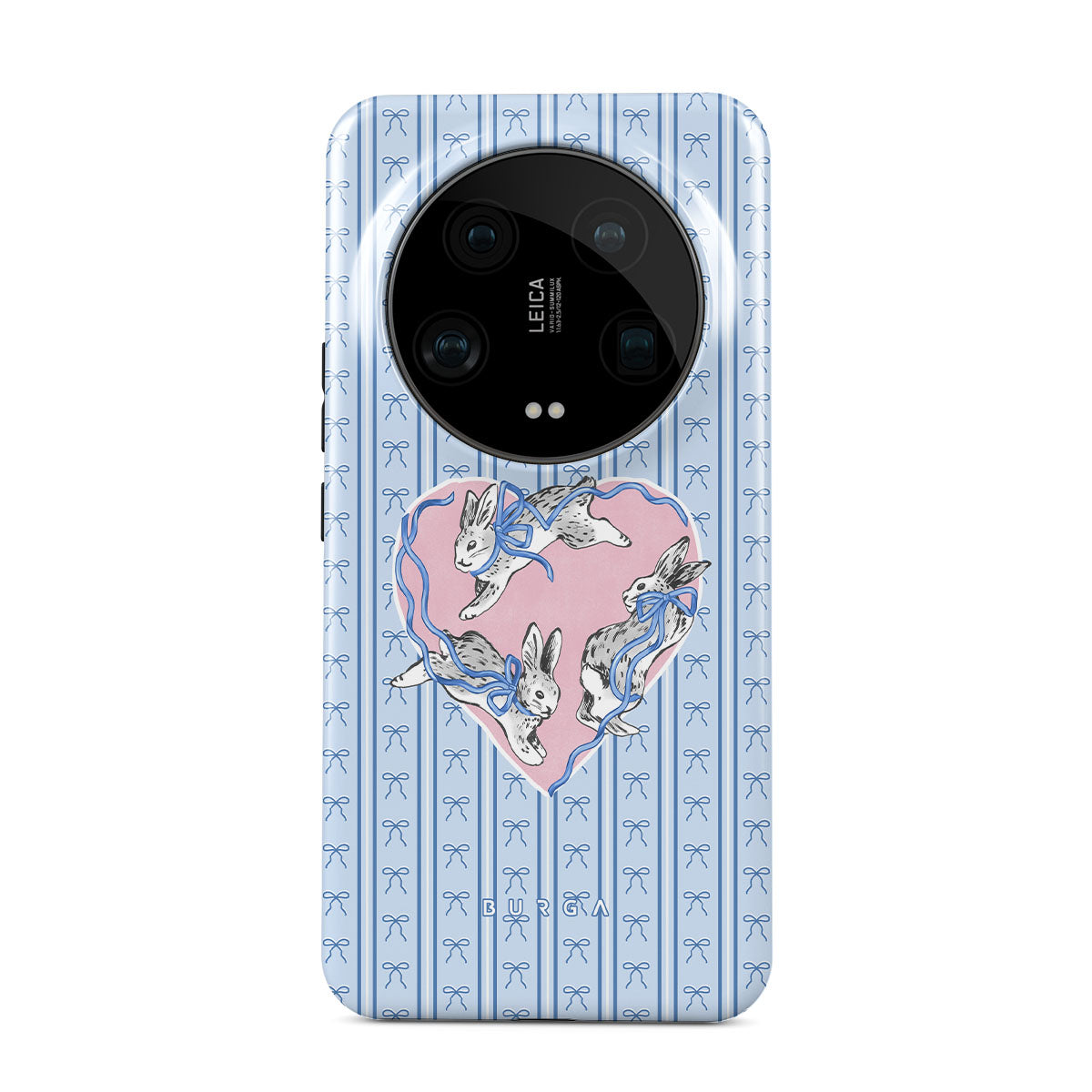 Kenmerken van dit design: witte konijnen, hartenlijst, blauwe strepen
