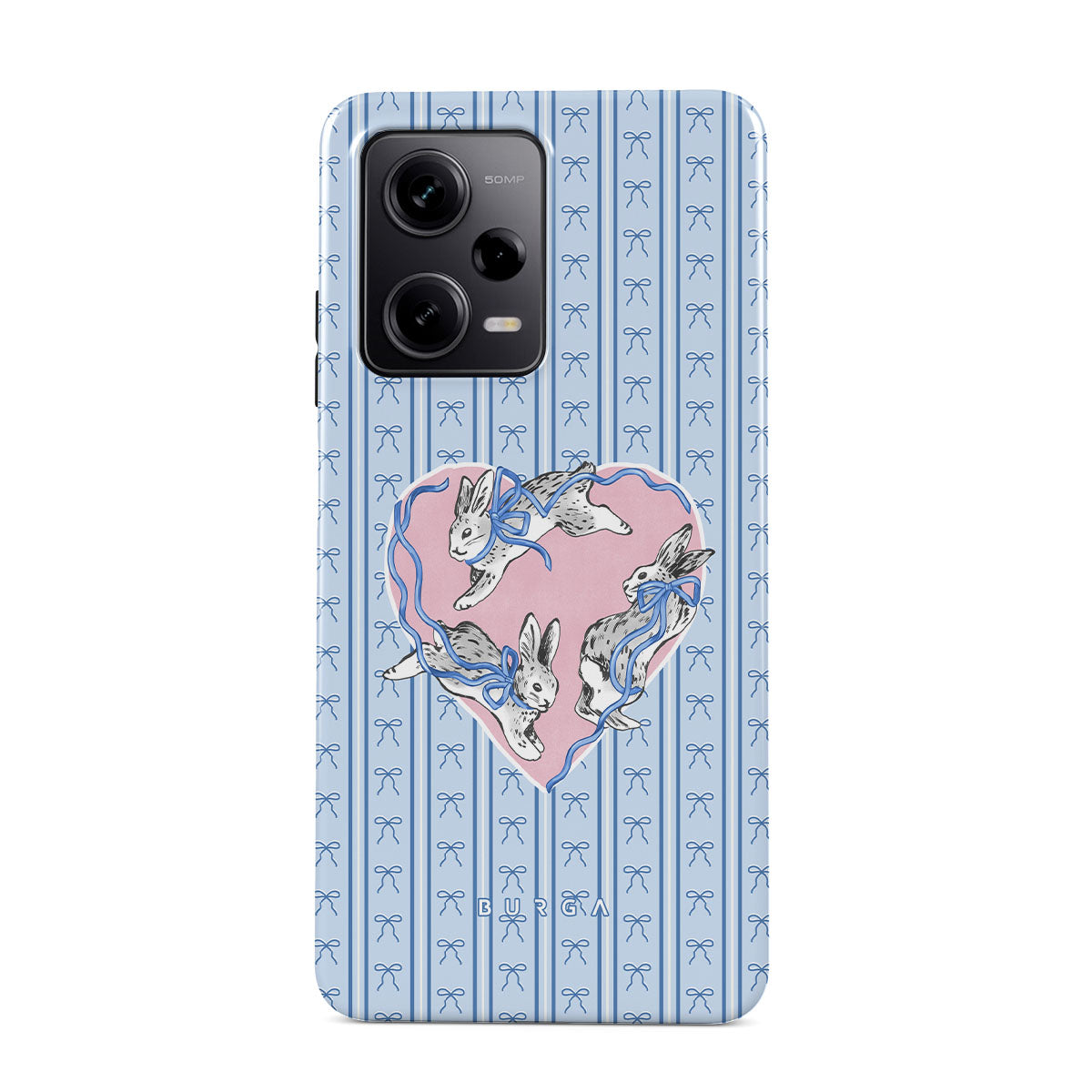 Kenmerken van dit design: witte konijnen, hartenlijst, blauwe strepen
