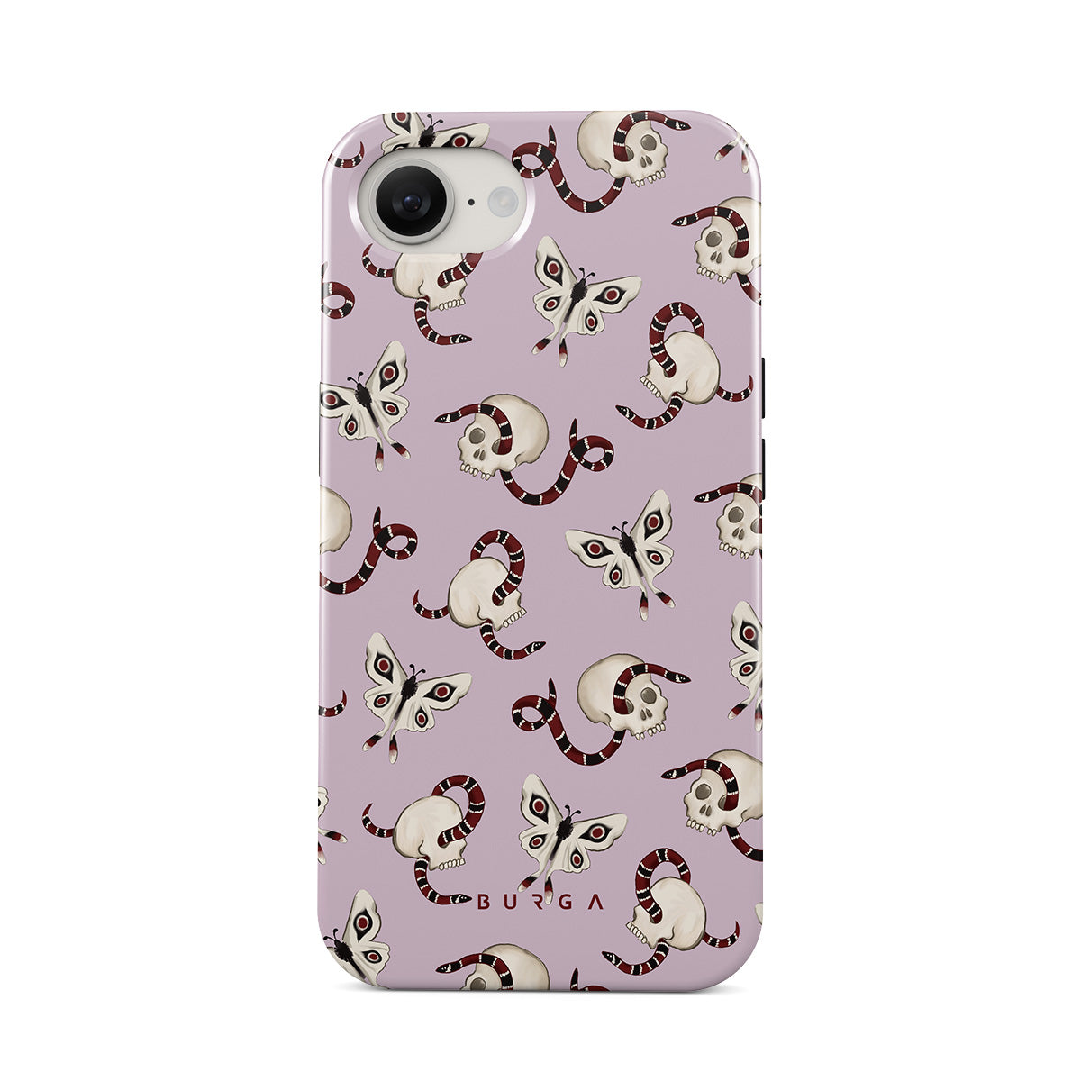 Kenmerken van dit design: schedels, bloemen, vlinders, roze achtergrond