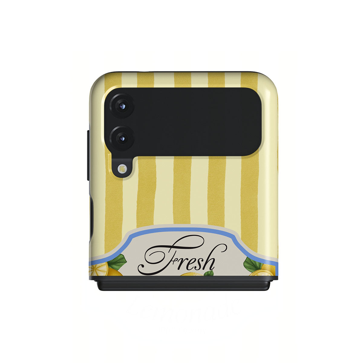 Kenmerken van dit design: Citroenen, gele strepen, speelse grafieken.