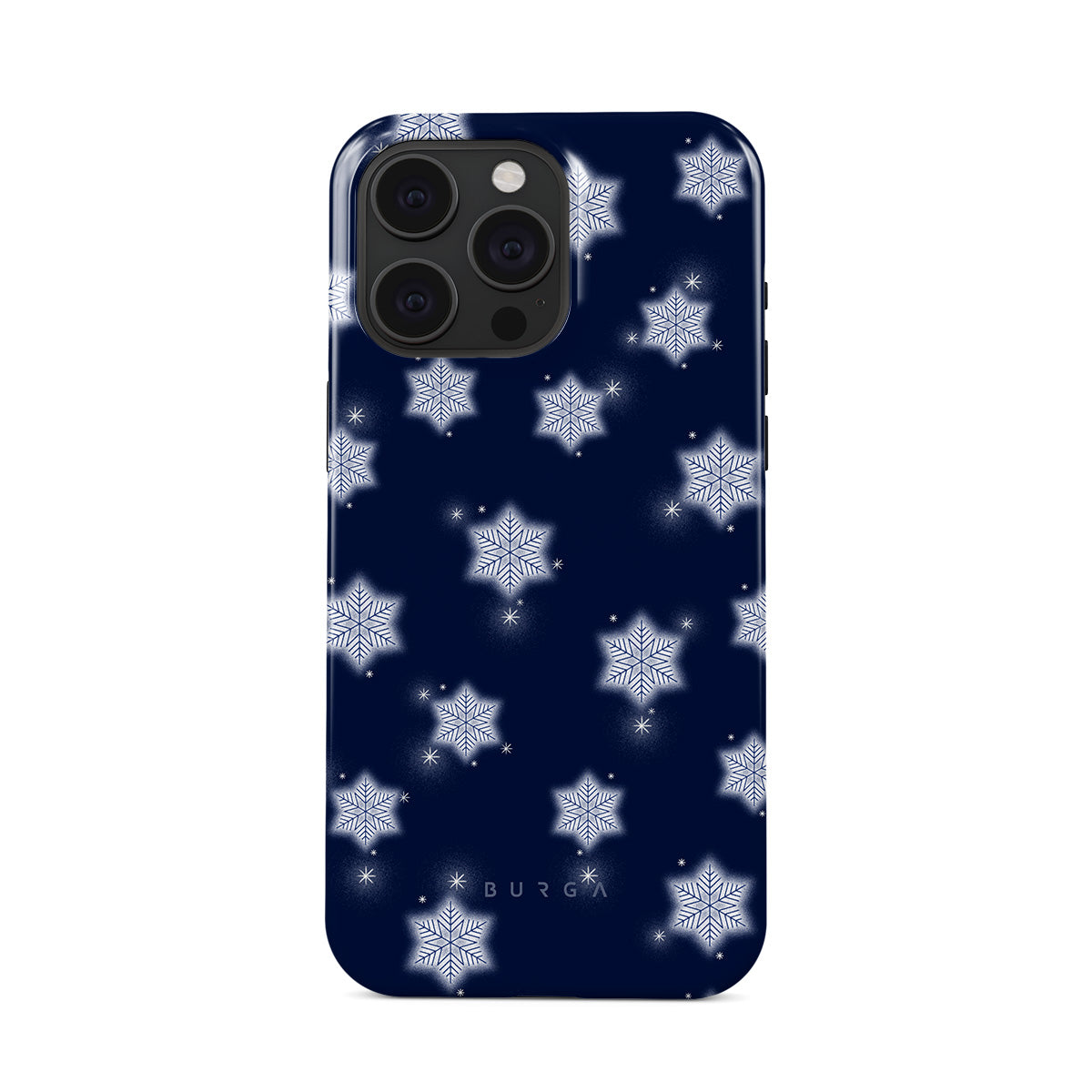 Kenmerken van dit design: witte sneeuwvlokken, marineblauwe achtergrond, winter sneeuwvlokkenpatroon, geometrische sneeuwvlokken, klassiek winterontwerp