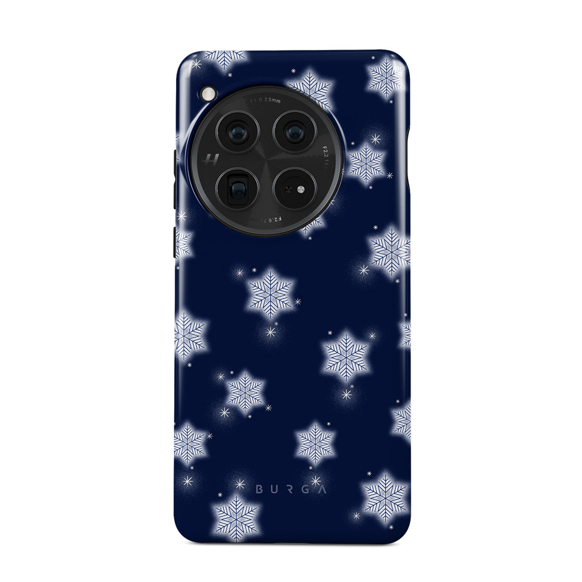 Kenmerken van dit design: witte sneeuwvlokken, marineblauwe achtergrond, winter sneeuwvlokkenpatroon, geometrische sneeuwvlokken, klassiek winterontwerp