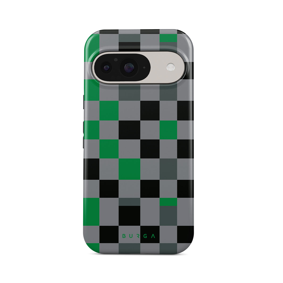 Kenmerken van dit design: ruitpatroon, groen, grijs en zwart, geometrisch