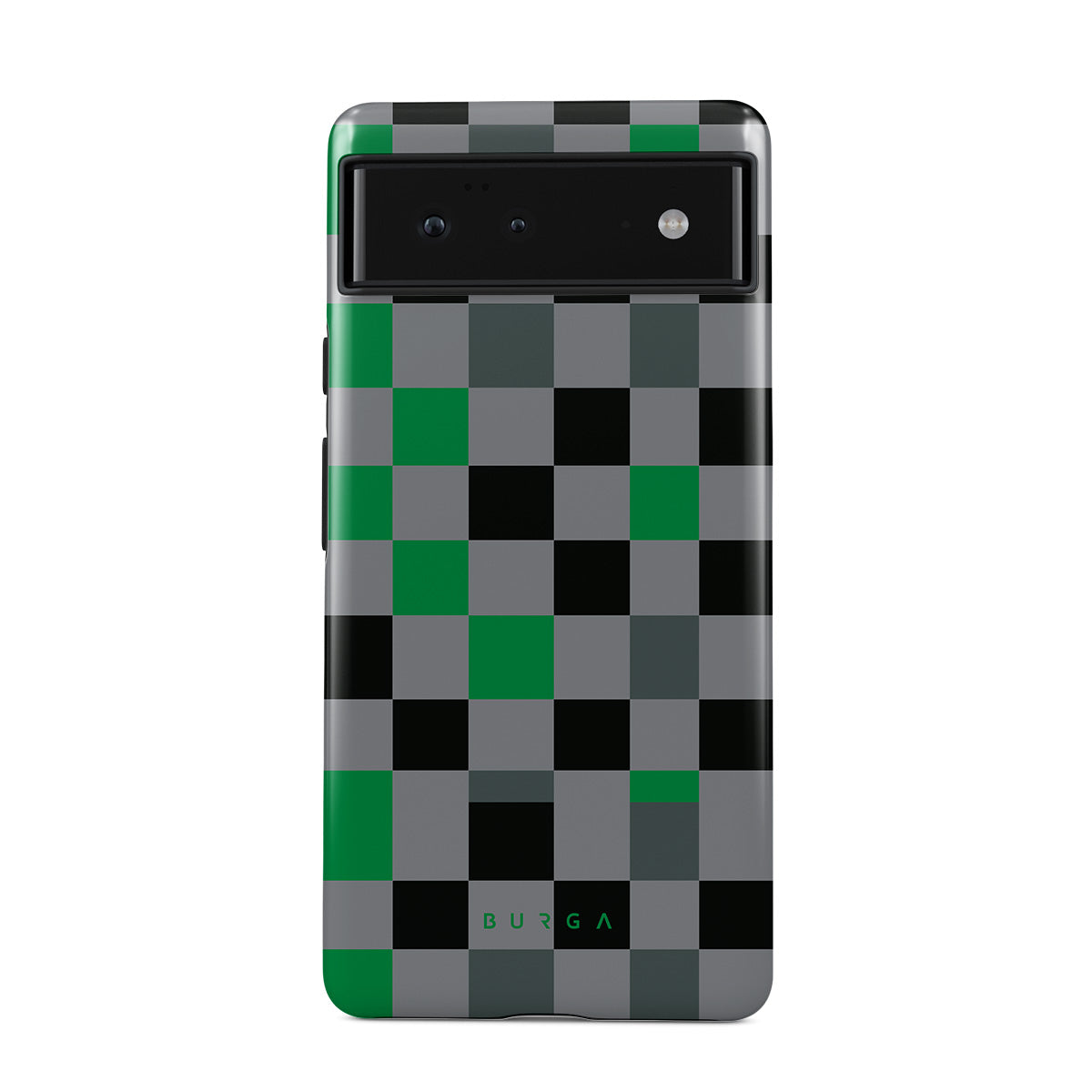 Kenmerken van dit design: ruitpatroon, groen, grijs en zwart, geometrisch
