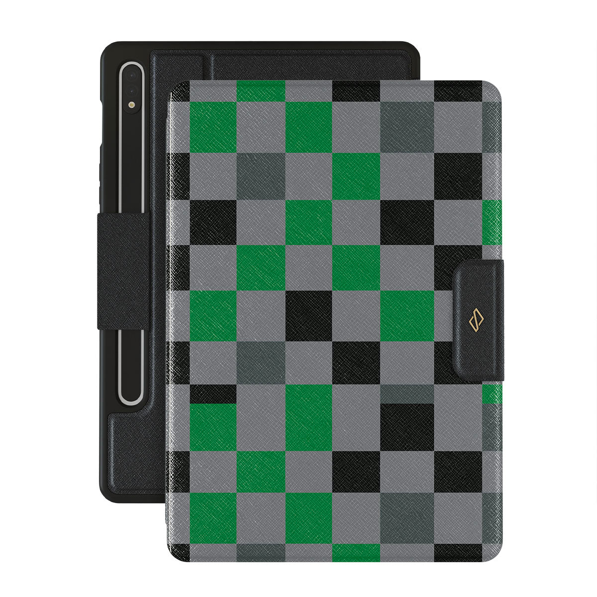 Kenmerken van dit design: ruitpatroon, groen, grijs en zwart, geometrisch
