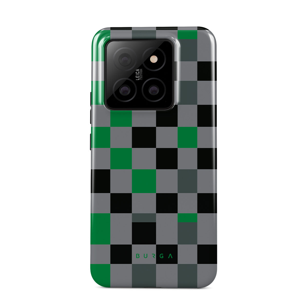 Kenmerken van dit design: ruitpatroon, groen, grijs en zwart, geometrisch