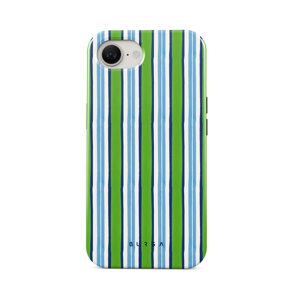 Kenmerken van dit design: groene, blauwe en witte verticale strepen