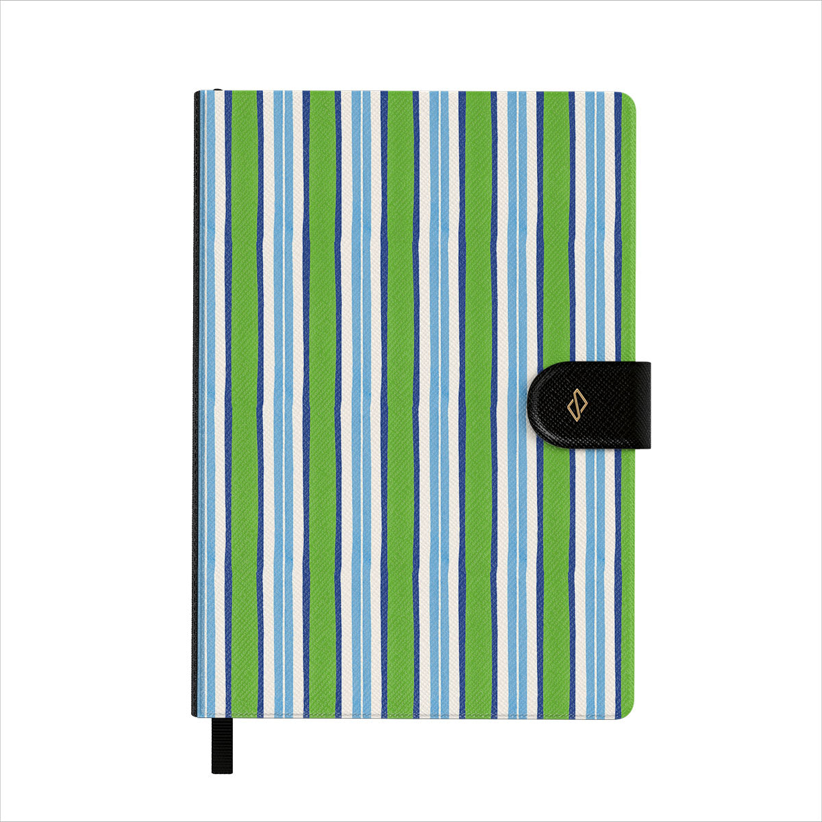 Kenmerken van dit design: groene, blauwe en witte verticale strepen