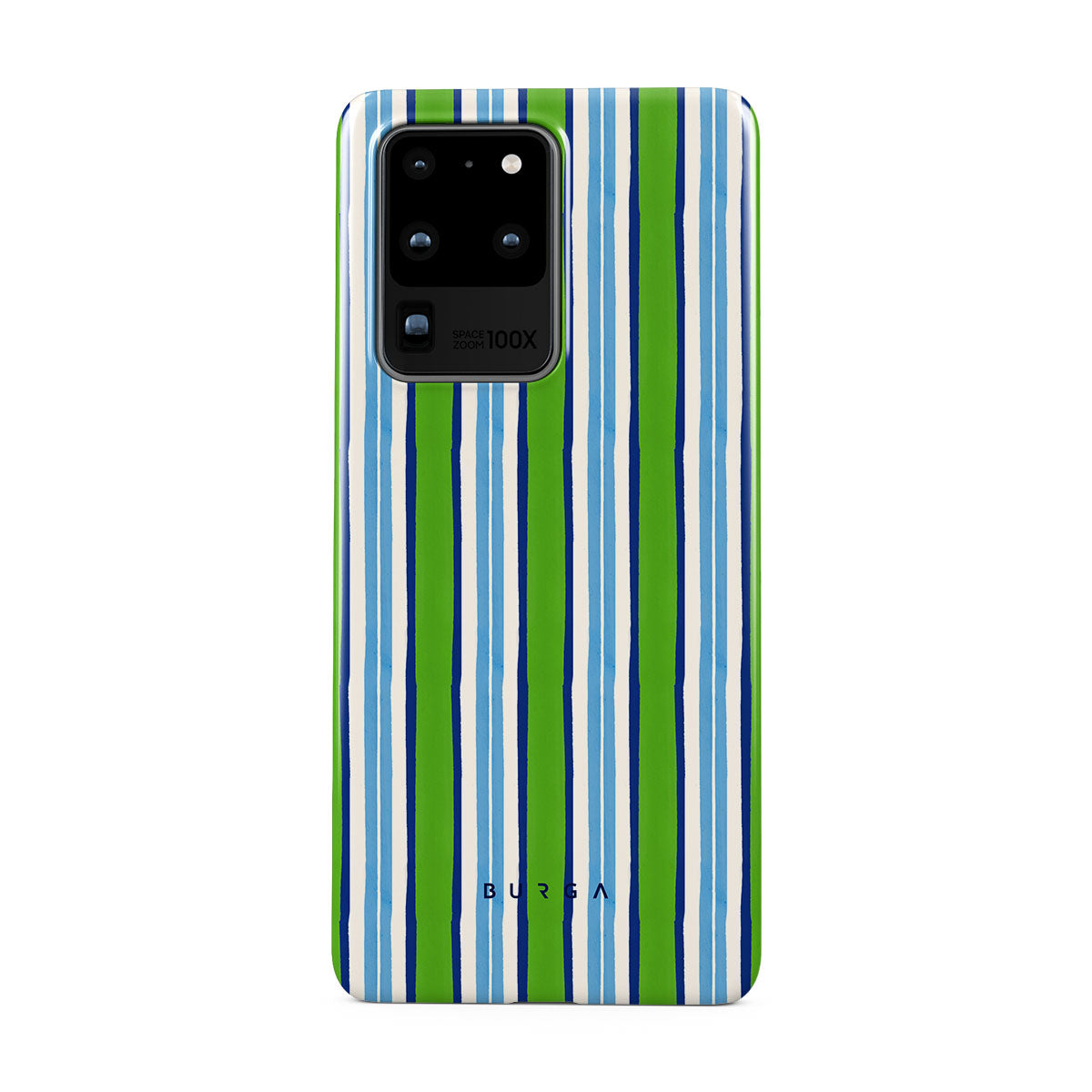 Kenmerken van dit design: groene, blauwe en witte verticale strepen