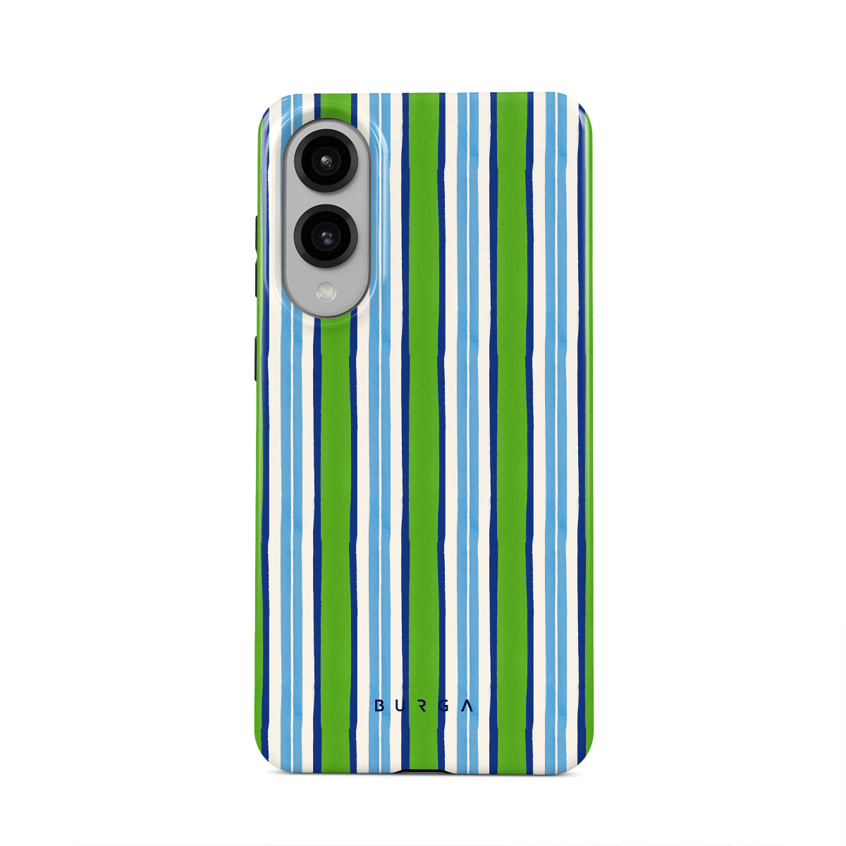 Kenmerken van dit design: groene, blauwe en witte verticale strepen