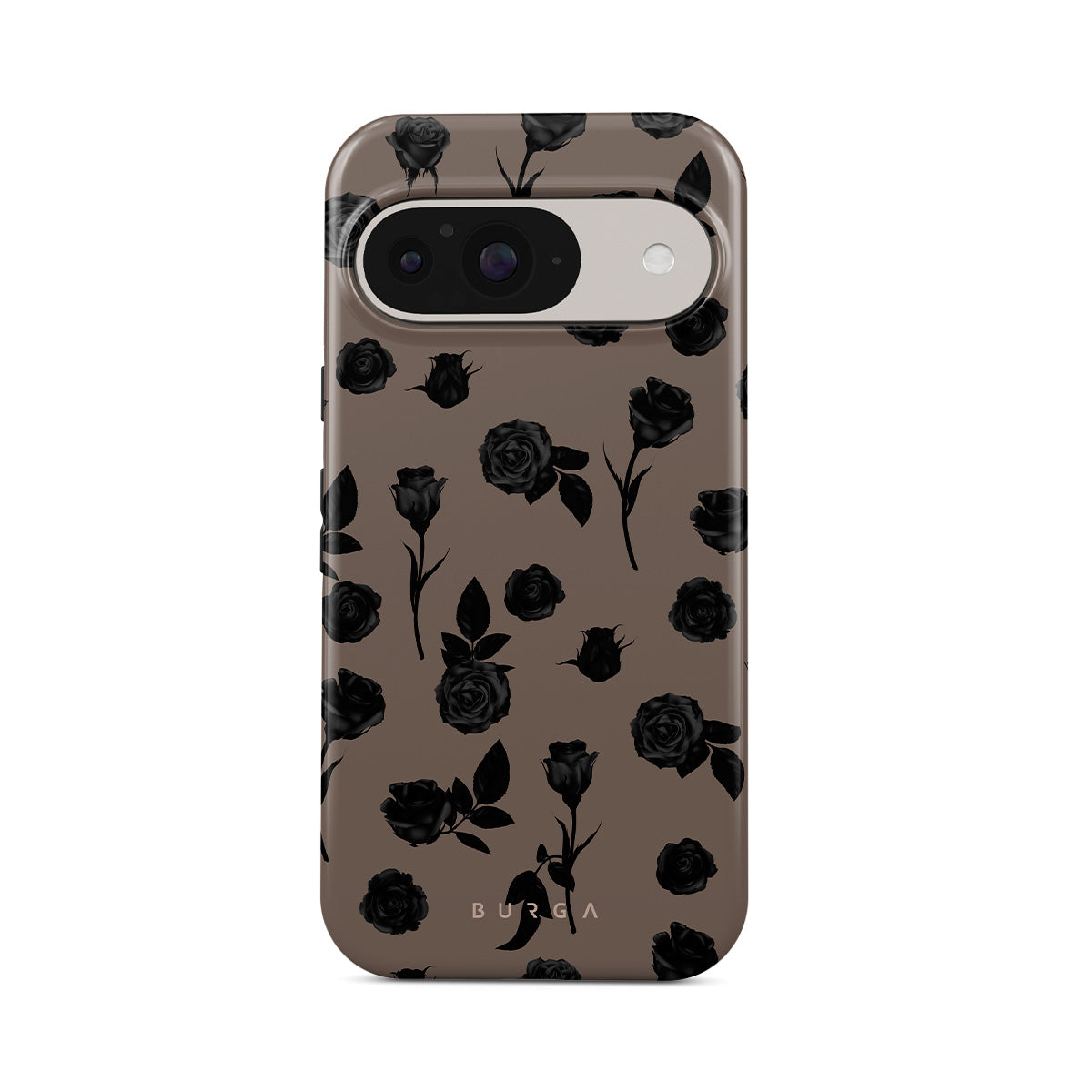 Dit ontwerp bevat: zwarte rozen, aardse tinten, bloemdetails, donkere bloemen.