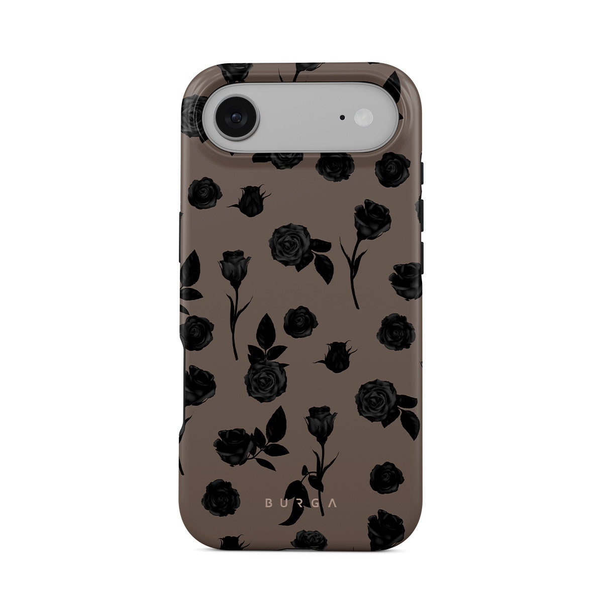 Dit ontwerp bevat: zwarte rozen, aardse tinten, bloemdetails, donkere bloemen.