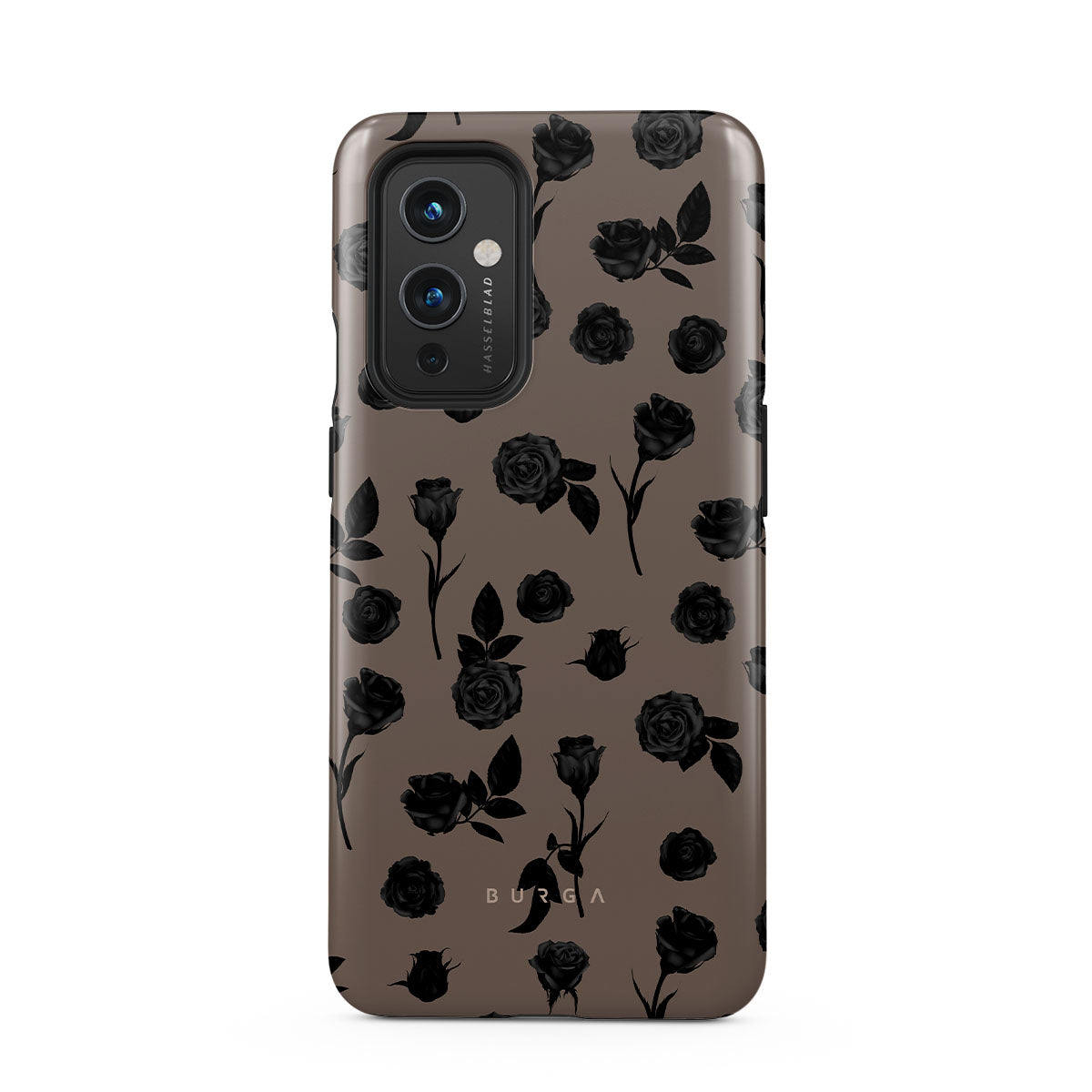 Dit ontwerp bevat: zwarte rozen, aardse tinten, bloemdetails, donkere bloemen.