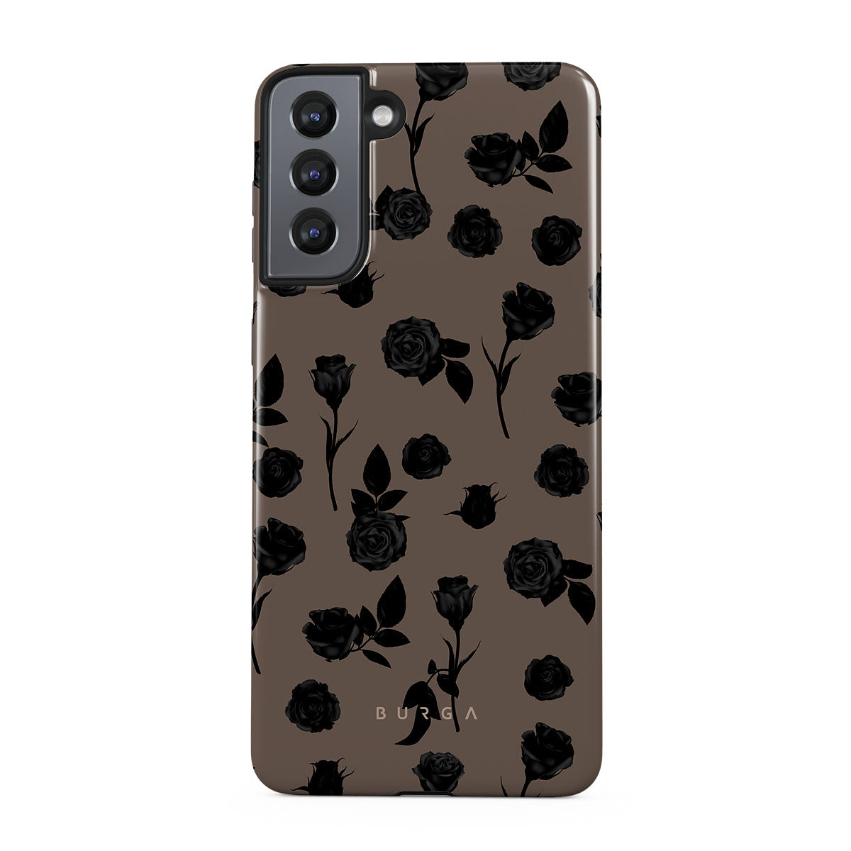 Dit ontwerp bevat: zwarte rozen, aardse tinten, bloemdetails, donkere bloemen.