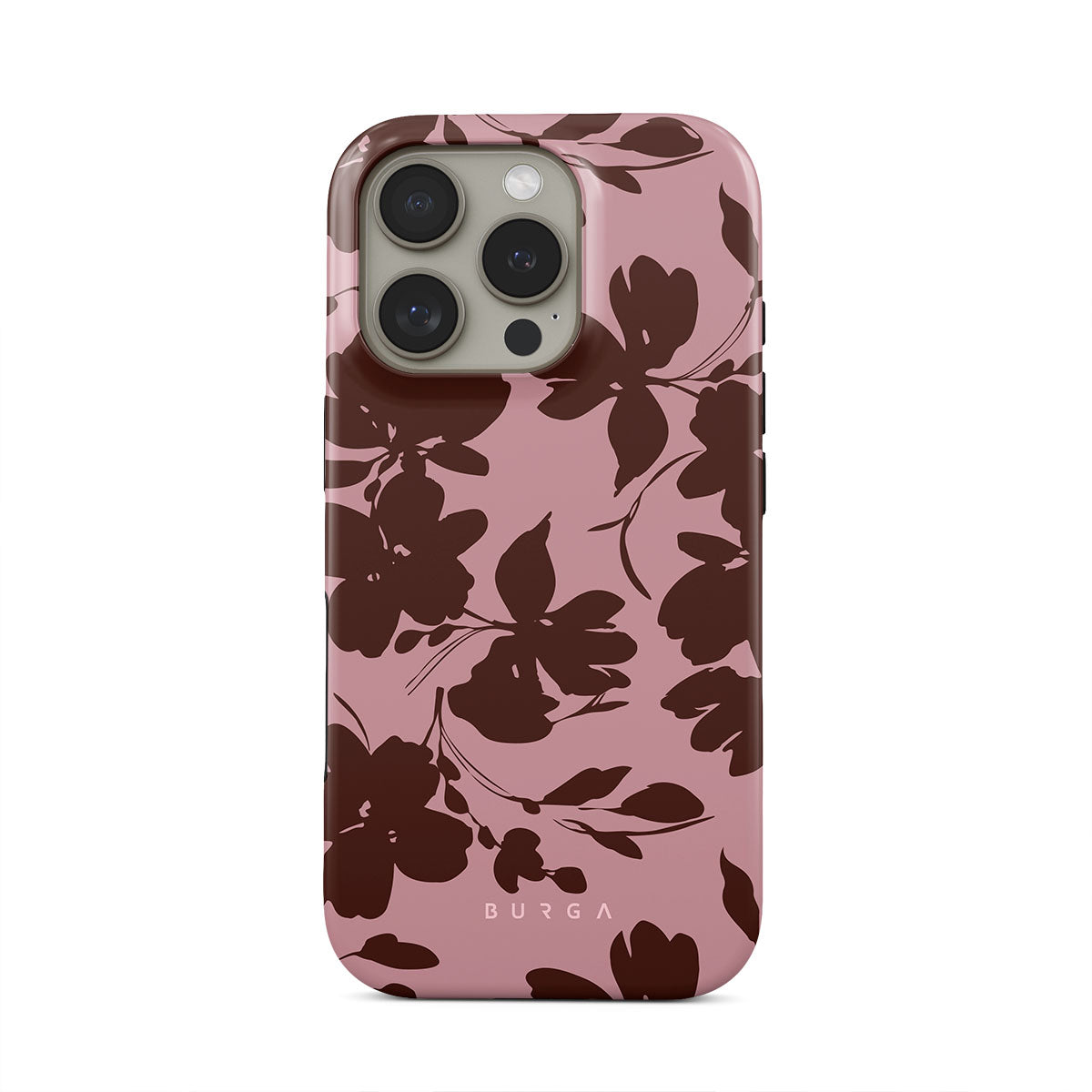 Kenmerken van dit design: abstracte bruine bloemen, roze achtergrond