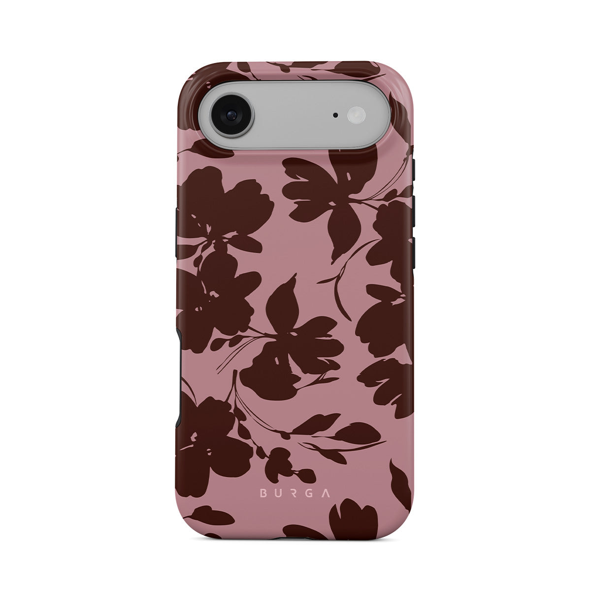 Kenmerken van dit design: abstracte bruine bloemen, roze achtergrond