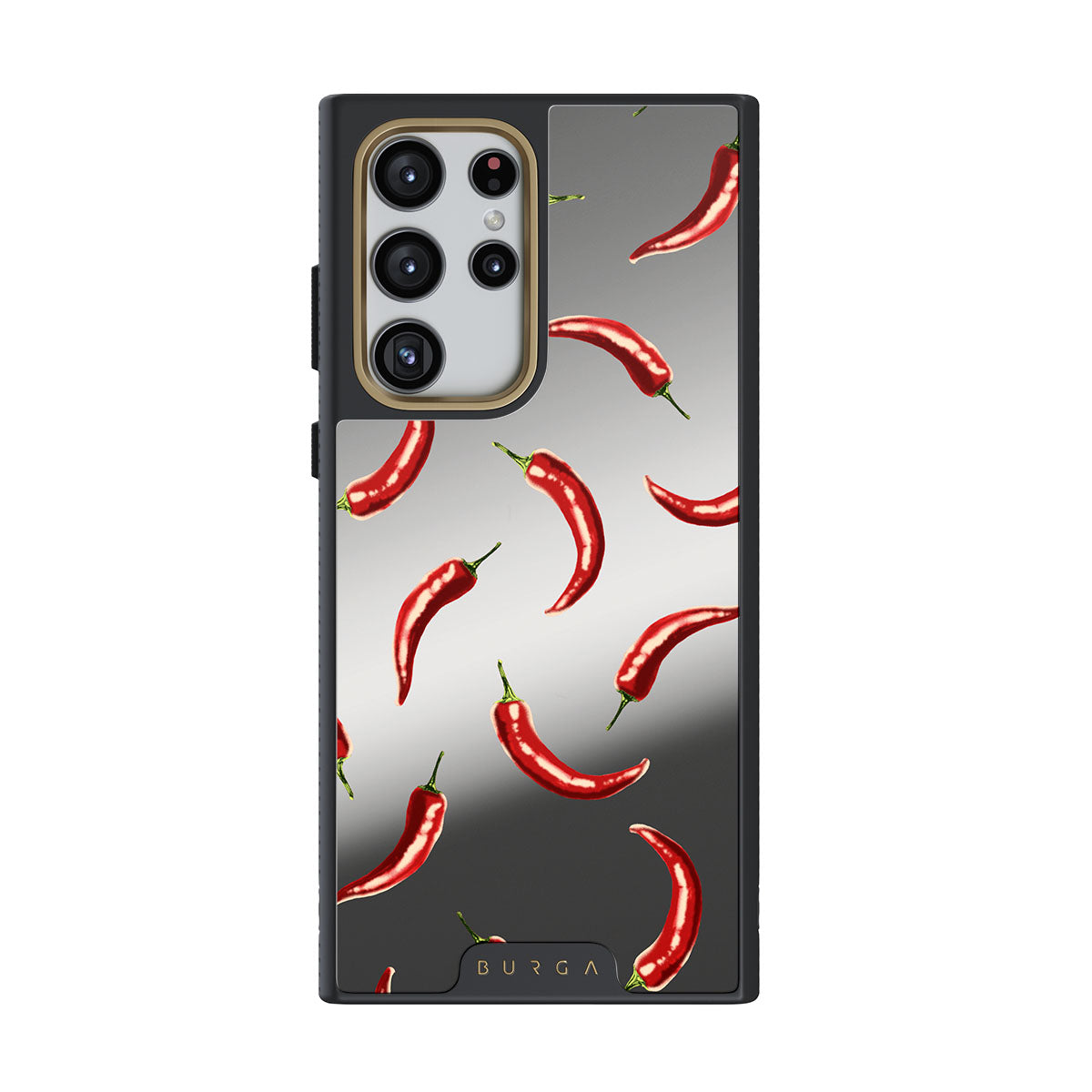 Kenmerken van dit design: chilipepers, pittig eten, rode pepers, spiegel