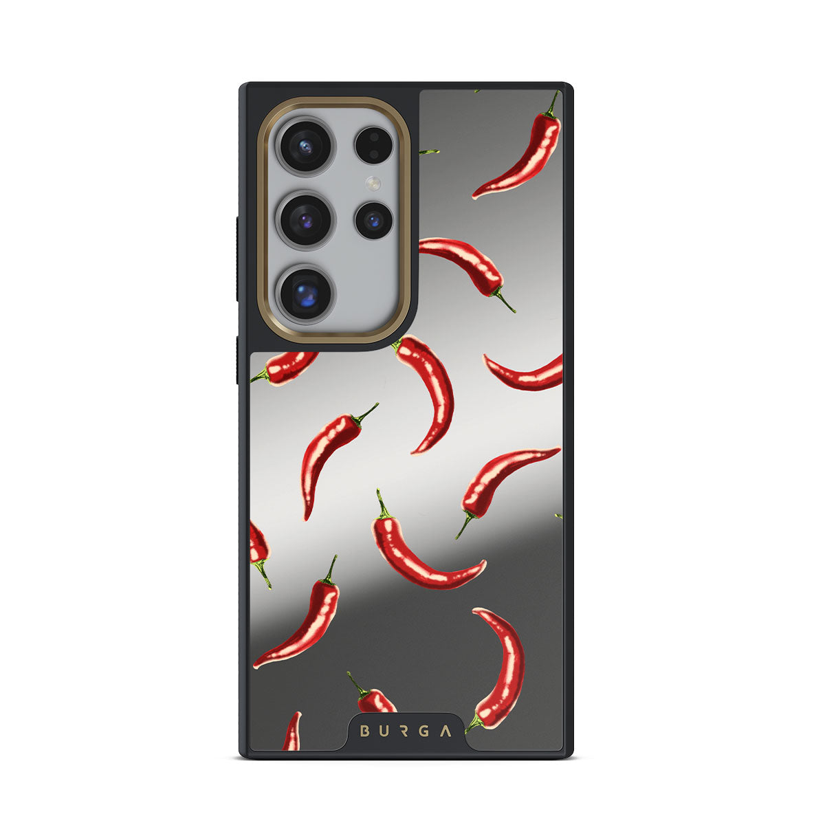 Kenmerken van dit design: chilipepers, pittig eten, rode pepers, spiegel