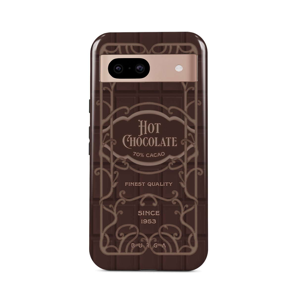 Kenmerken van dit design: hete chocoladelabel, bruine chocoladeontwerpen, retro verpakkingsstijl