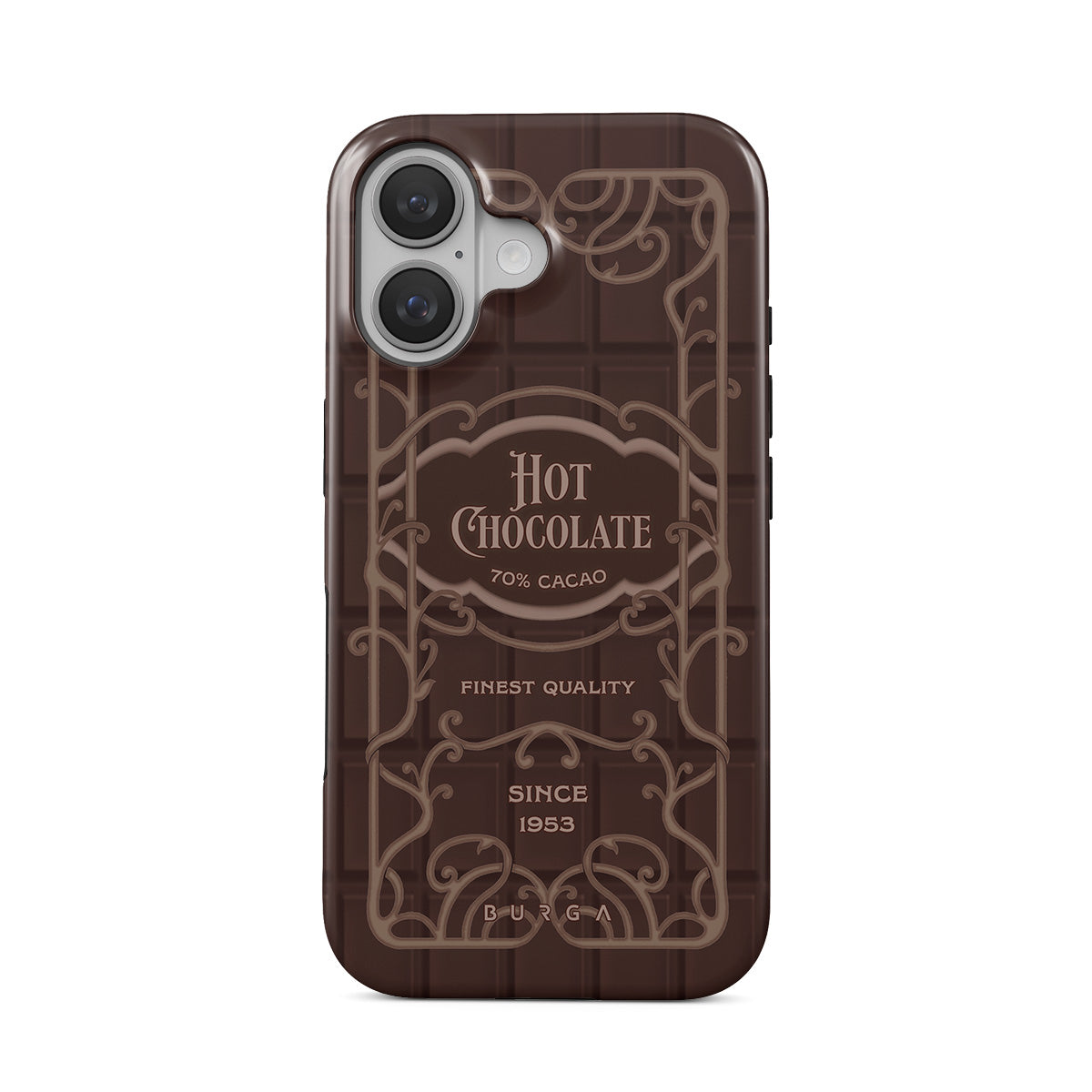 Kenmerken van dit design: hete chocoladelabel, bruine chocoladeontwerpen, retro verpakkingsstijl
