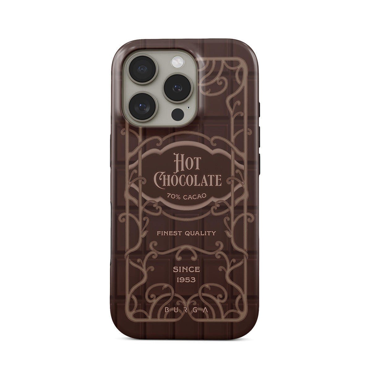 Kenmerken van dit design: hete chocoladelabel, bruine chocoladeontwerpen, retro verpakkingsstijl