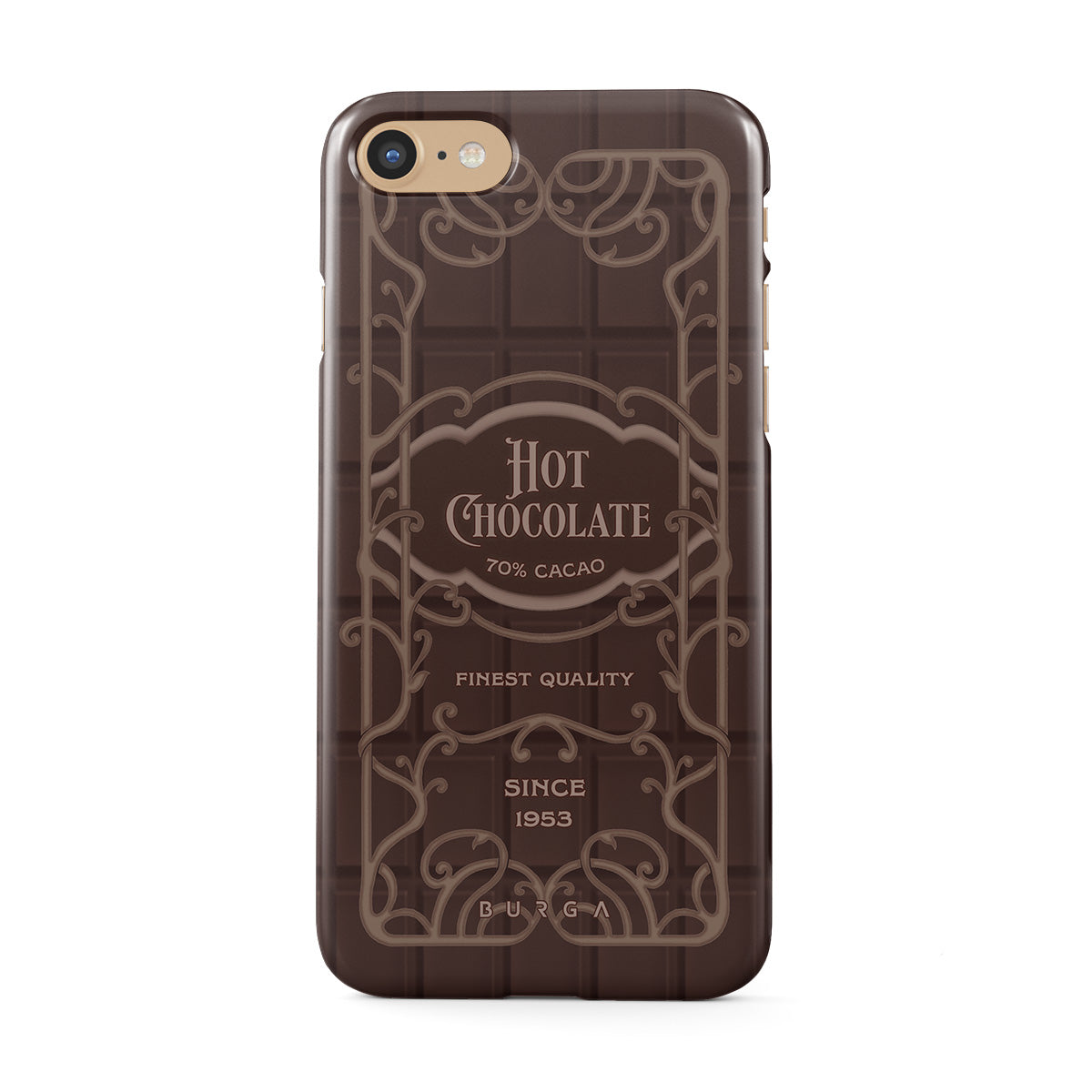Kenmerken van dit design: hete chocoladelabel, bruine chocoladeontwerpen, retro verpakkingsstijl