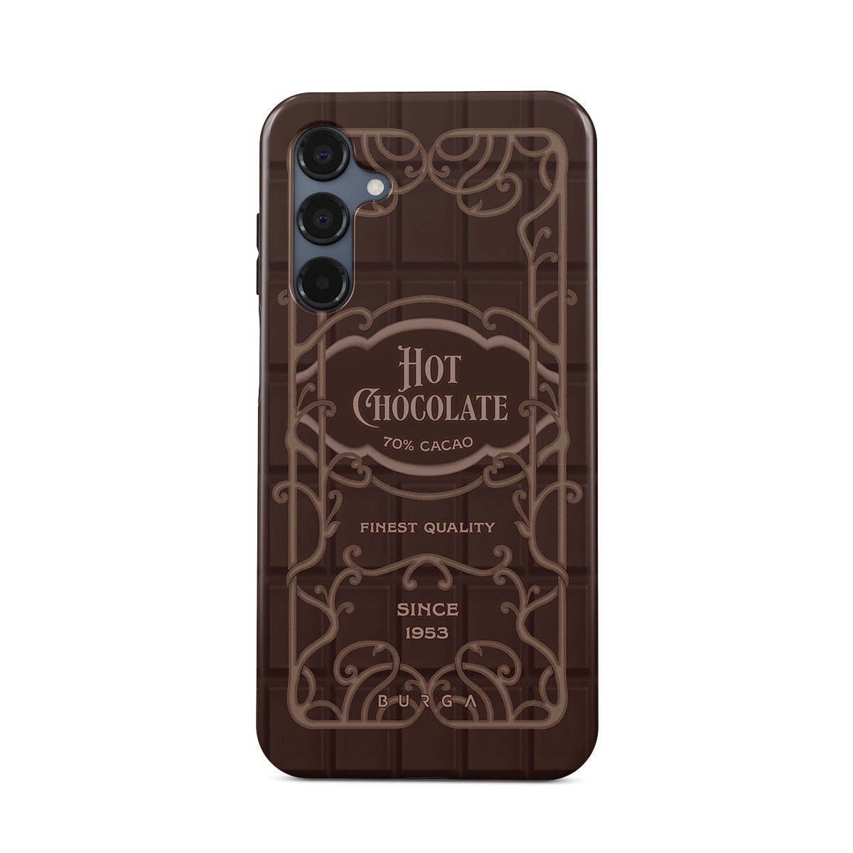 Kenmerken van dit design: hete chocoladelabel, bruine chocoladeontwerpen, retro verpakkingsstijl