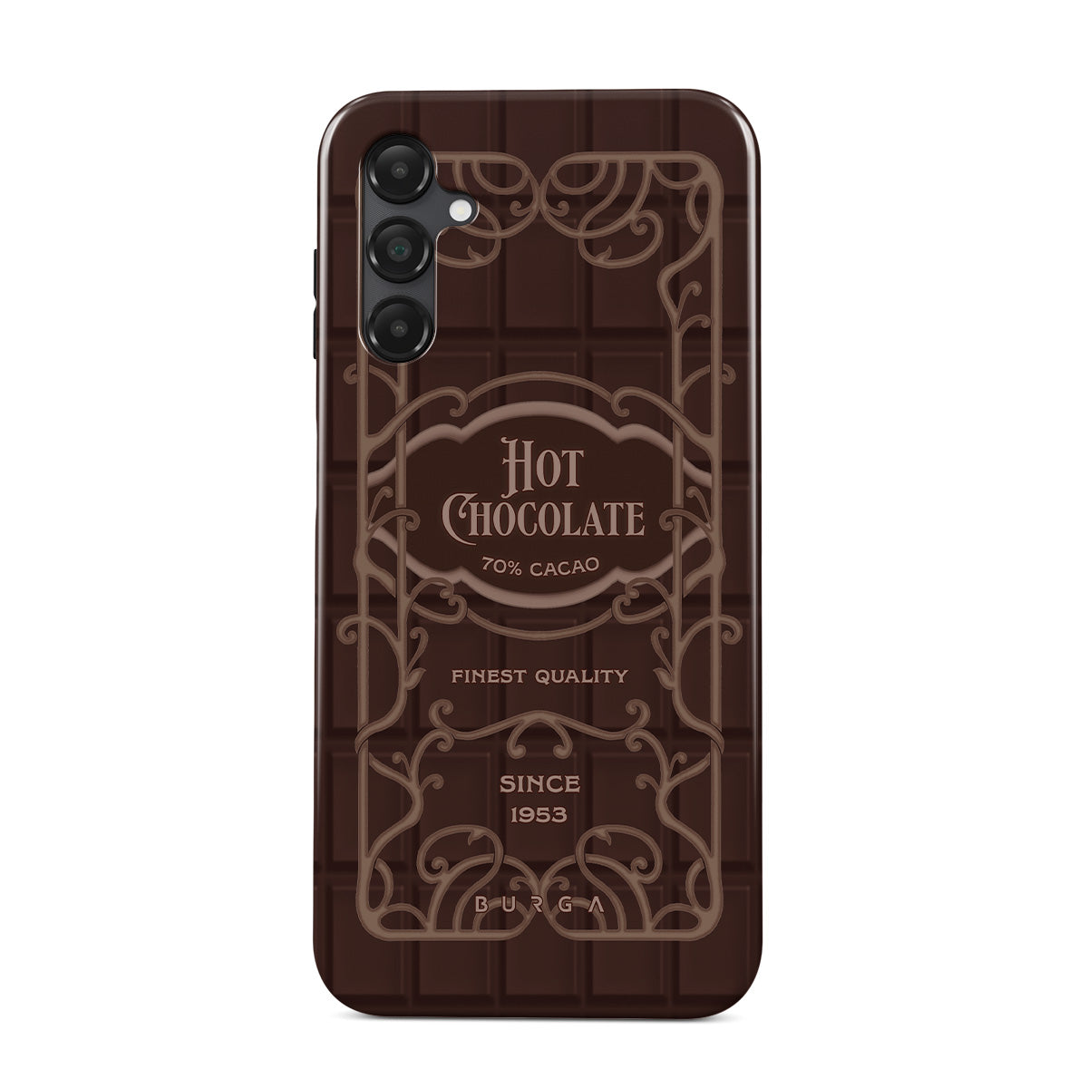 Kenmerken van dit design: hete chocoladelabel, bruine chocoladeontwerpen, retro verpakkingsstijl