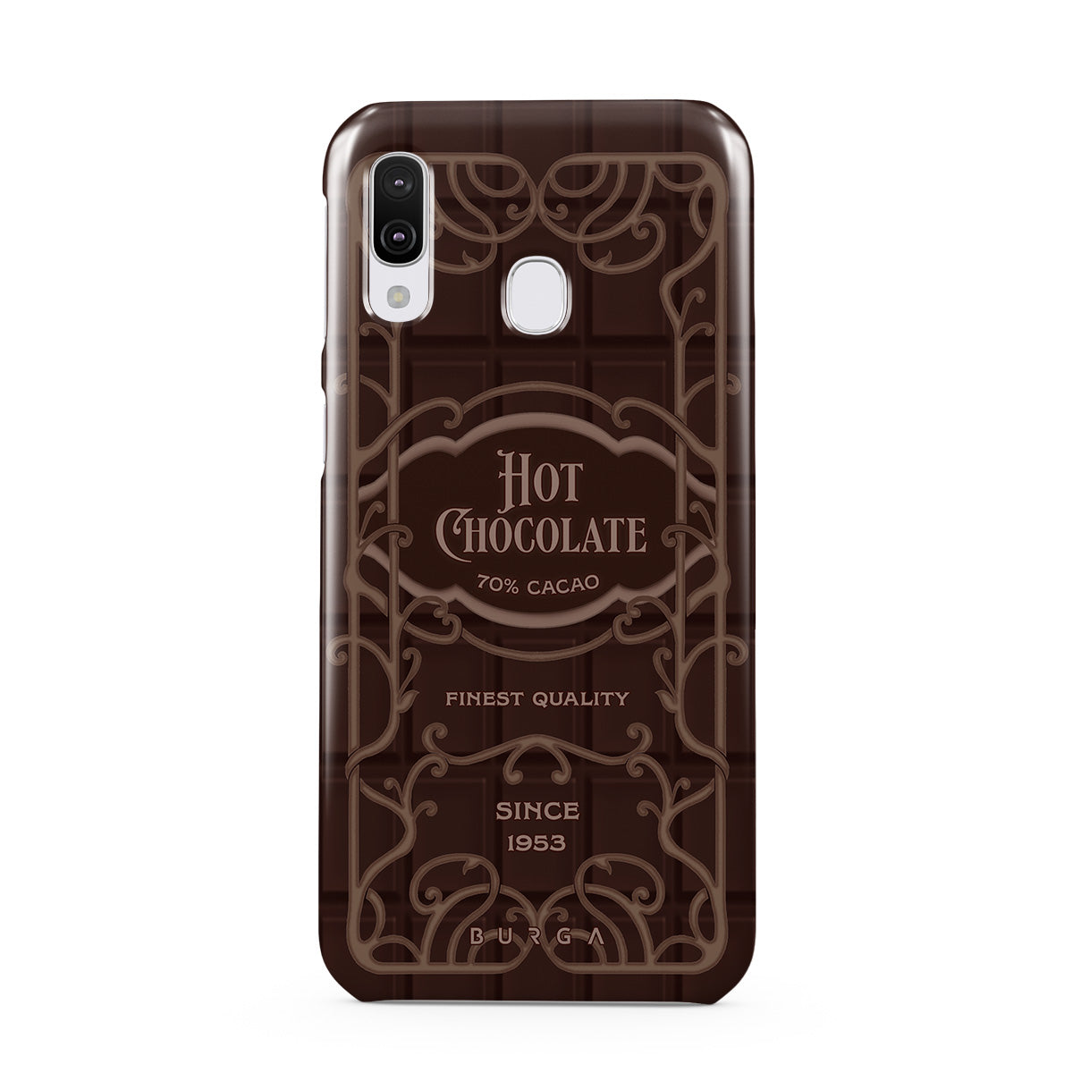Kenmerken van dit design: hete chocoladelabel, bruine chocoladeontwerpen, retro verpakkingsstijl