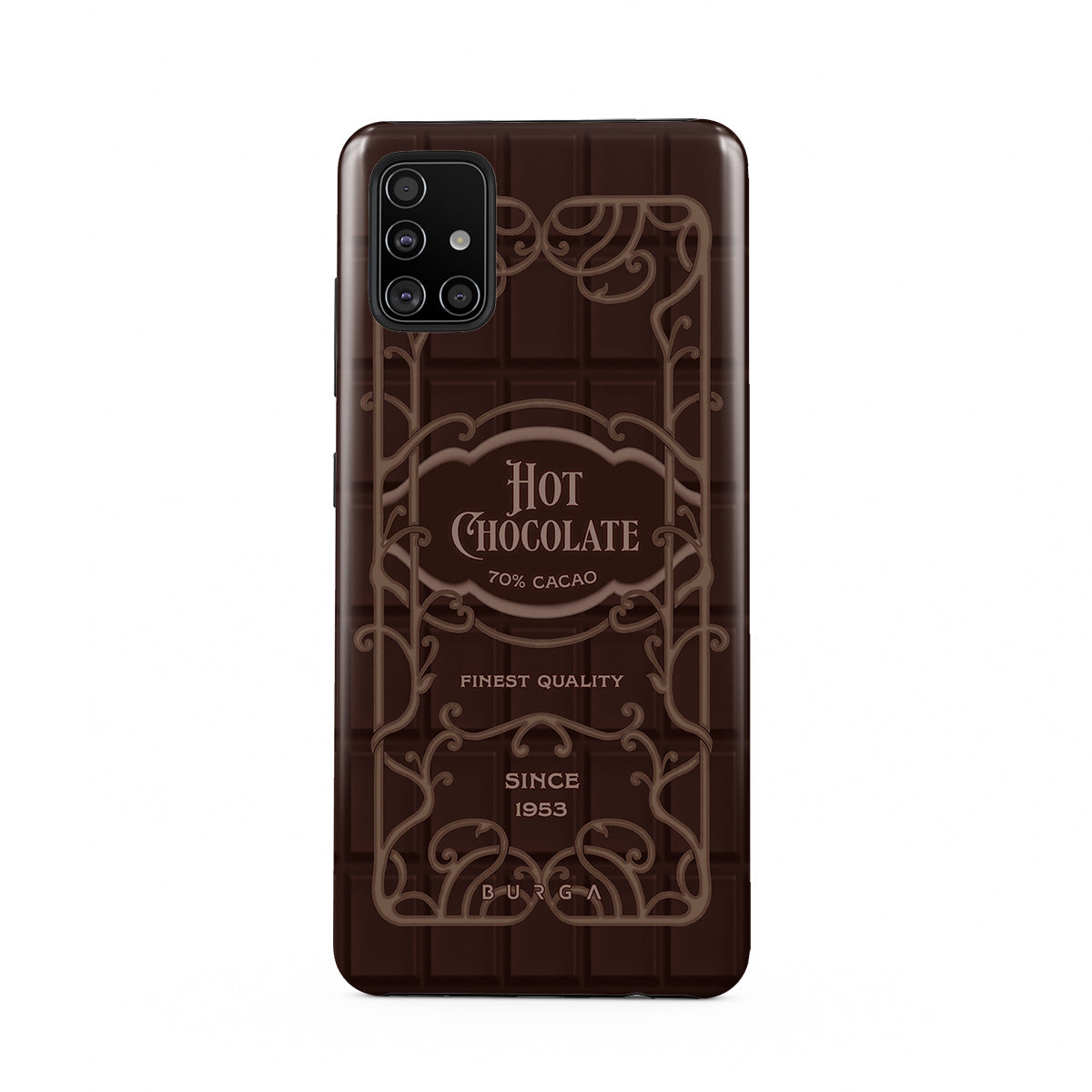 Kenmerken van dit design: hete chocoladelabel, bruine chocoladeontwerpen, retro verpakkingsstijl
