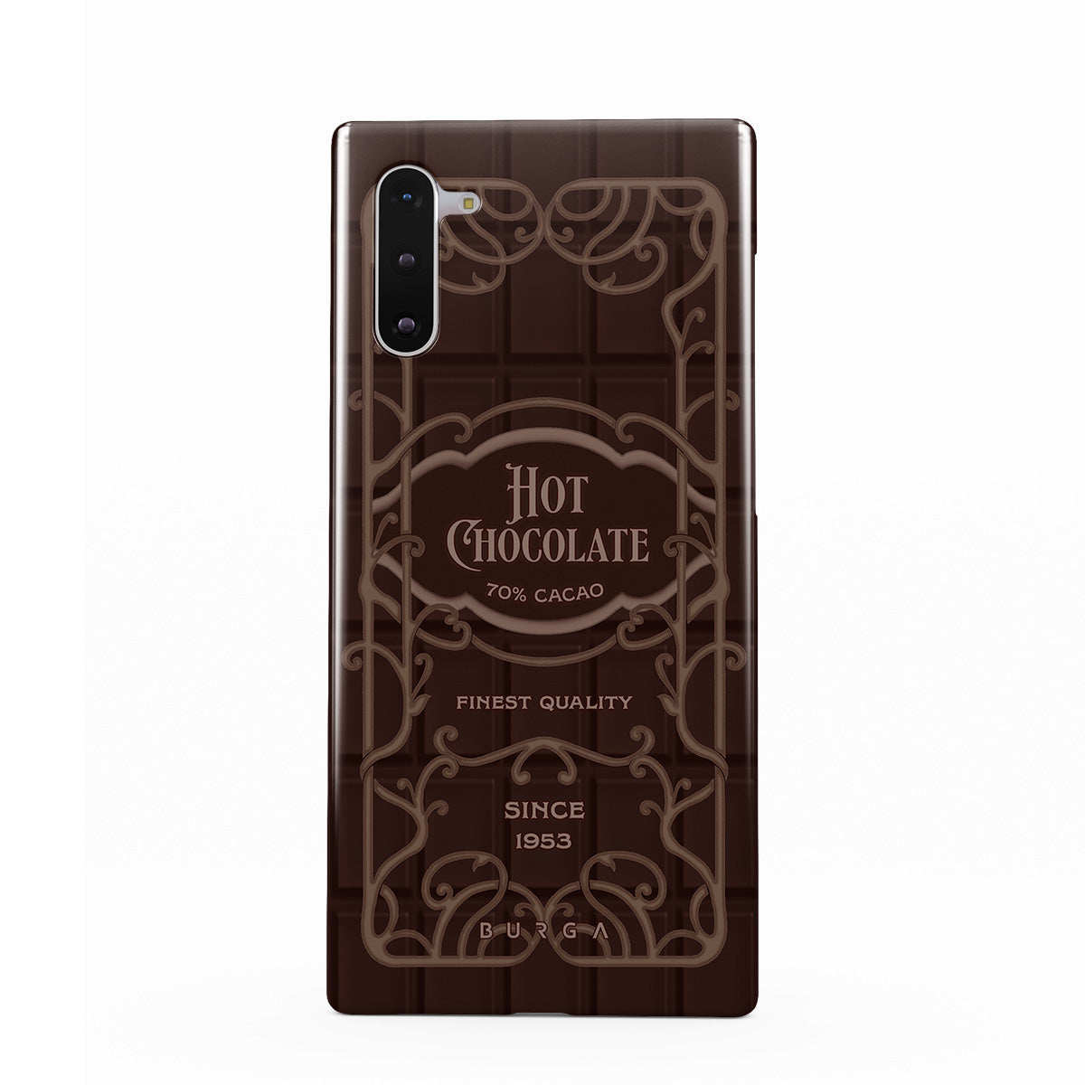 Kenmerken van dit design: hete chocoladelabel, bruine chocoladeontwerpen, retro verpakkingsstijl