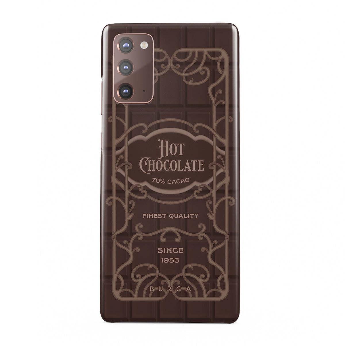 Kenmerken van dit design: hete chocoladelabel, bruine chocoladeontwerpen, retro verpakkingsstijl