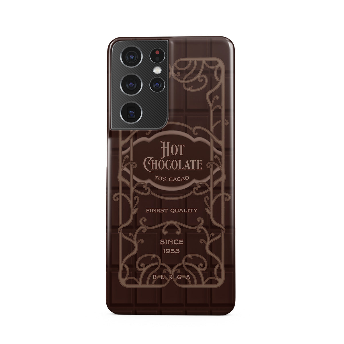 Kenmerken van dit design: hete chocoladelabel, bruine chocoladeontwerpen, retro verpakkingsstijl